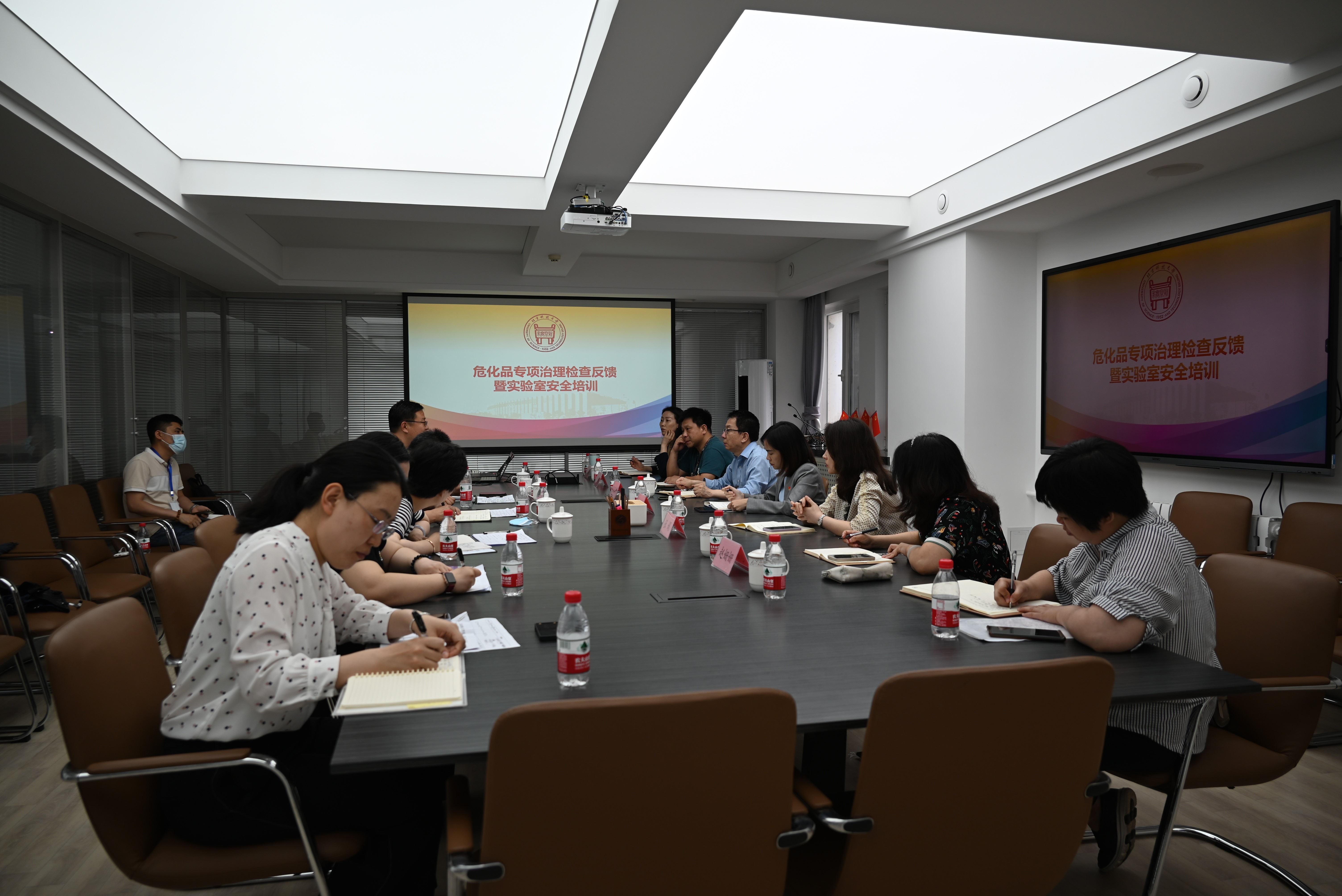 下午,检查反馈暨实验室安全培训会在科技楼四层M11会议室举行,两位专家与各单位分管领导、安全秘书、师生代表深入交流,出具整改意见,并就近年来各地发生的典型案例、理工科院校实验室共性问题及解决方式进行了详细介绍。