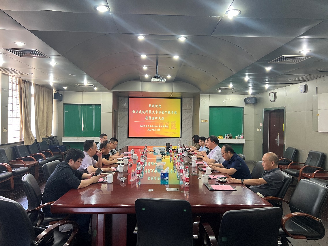 7月14日,西安建筑科技大学冶金工程学院院长李林波、副院长李小明一行赴我院调研交流,同行代表有系主任张朝晖,教研室主任施瑞盟、邢相栋等。我院党委书记、院长张建良,副院长贺东风、陈怡凌,大安全科学研究院副院长焦克新、钢铁冶金系主任张家泉等参加活动。