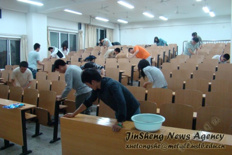 4月30日,为了迎接国际劳动节的到来,进一步体现中国共产党全心全意为人民服务的宗旨,实践和落实科学发展观,冶本07-1党支部联合院团委学生会开展了清扫冶金楼教室的实践活动。