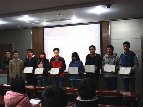随后,辅导员郝勇飞向七位学习小组组长颁发聘书,这七位小组长均为年级排名前几位并且愿意为同学们奉献自己力量的优秀学生。同学们热烈的掌声不仅表达了对七位组长的敬佩与祝贺,更展现了对一起努力学习的期待。