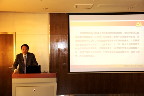张立峰院长首先讲话,感谢学院全体教职员工的勤奋工作,感谢学院各口的分管院领导给予的密切配合与大力支持,对学院一年来取得的成绩表示肯定,希望我院未来取得更大的成绩。