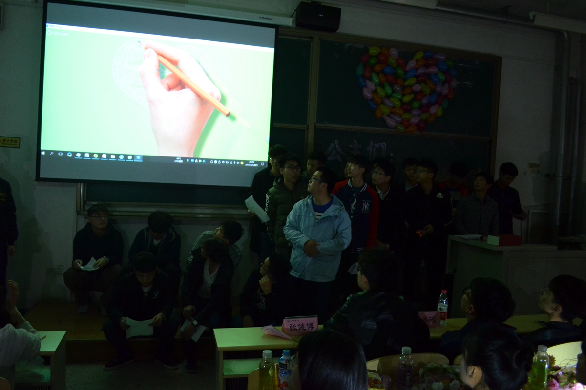 在男生们精心准备的玫瑰花陪衬下,女生们依次入场,作为今天主角的她们,脸上满是期待的表情。晚会开始,首先由冶金1601班全体男生带来表演,他们模仿非诚勿扰节目,通过前期录制的个人视频,以及现场劲爆的舞蹈调动起全场的氛围。