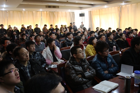 2012年2月26日上午九点半邱冠周院士学术报告会暨冶金大讲堂第一讲在冶金生态楼616青钢报告厅顺利举行,参加此次报告会的校、院领导有副校长谢建新教授、张立峰院长、张建良副院长等,我院师生抱着极大的兴趣积极参加,初步估计参会人数超过150人,把整个青钢报告厅挤得水泄不通,有30名师生是全程站着听完讲座的。