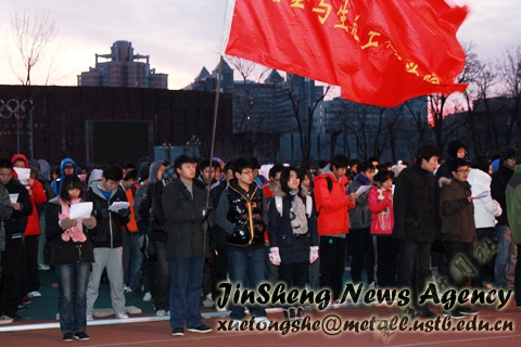 2011年12月09日清晨7点,williamhill纪念一二•九运动76周年主题教育活动在运动场成功举行。本科11级全体学生参与了此次纪念活动。