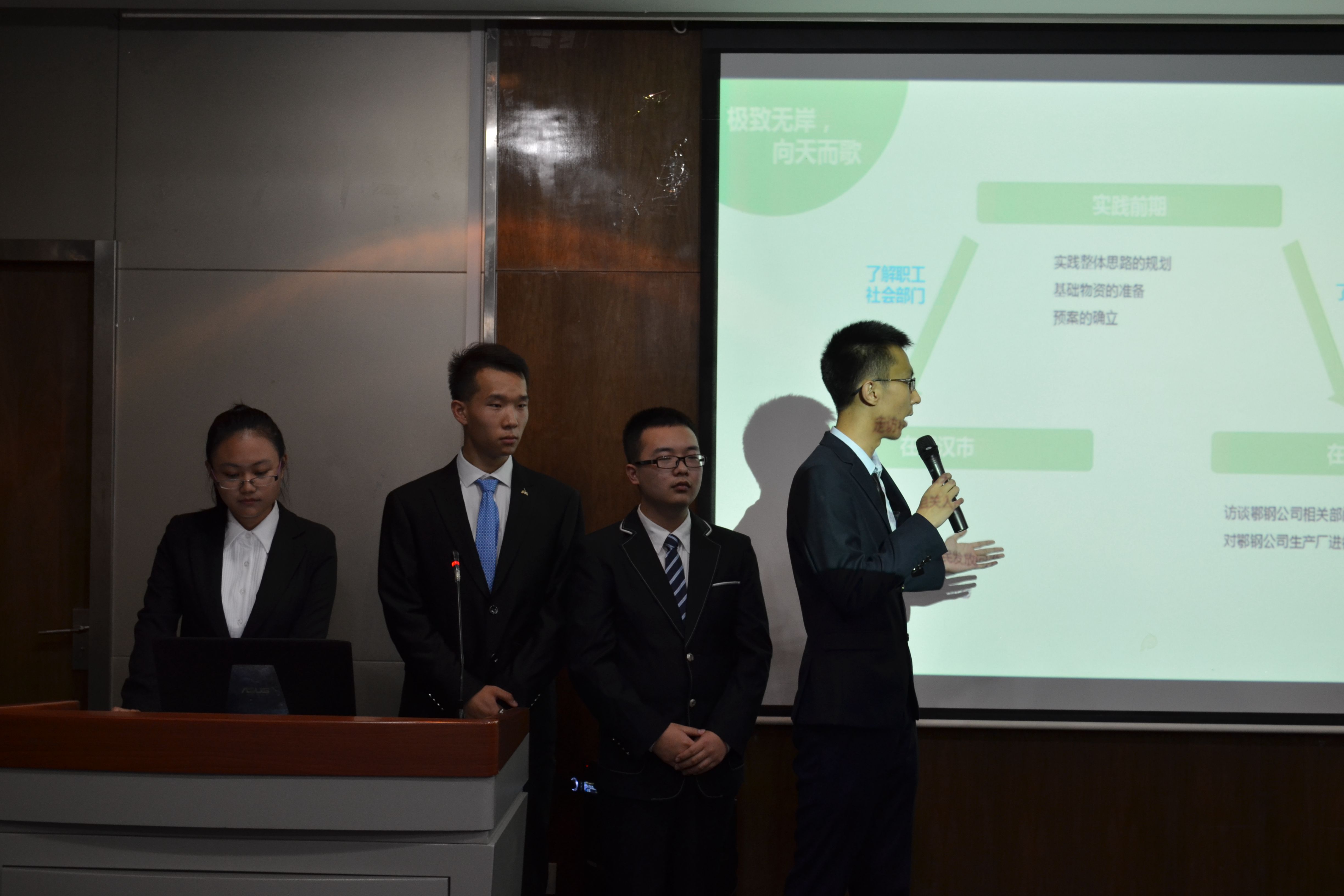 营口非国有钢企调研实践团采取实地调查,走访,座谈会等方式进行调研,他们还在辽宁营口创建了实践基地,并总结出了从企业内部找利润的结论。评委建议他们从抽象中建立模型,深挖案例。武汉钢铁集团公司调研实践团前期走访了20个社区,从迷茫到希望,一步步走来,一步步成熟。实践团成员选择走访工作人员社区,从侧面了解企业存在的真实问题。宝钢钢铁集团公司调研实践团,探究了近五十家网络店铺,统计了大量的数据。前期调研,后期验证,总结出了宝钢成功模式,并就产能优化问题进行了详细的叙述。鞍钢钢铁集团公司调研实践团,由来自八个不同省的十个人走访生产一线,在走访中寻找自己的价值。他们还宣传了“3005”政策,以此来降低企业负担,进行人员的安置。