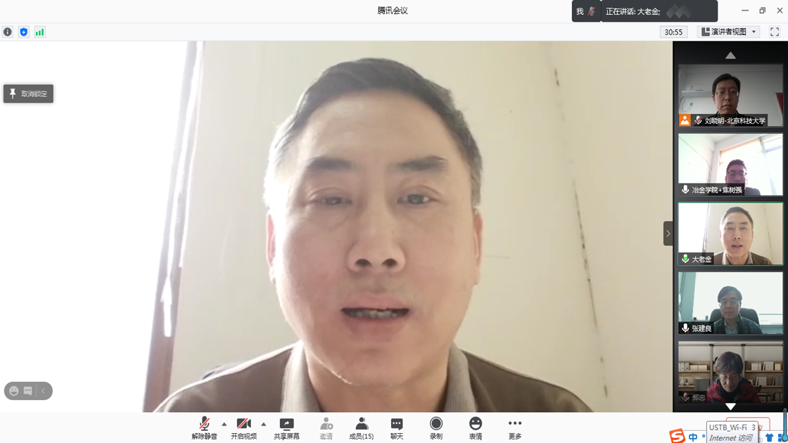 williamhill冶金工程国家级实验教学示范中心2020年教学指导委员会年度会议于2021年3月4日14:00-16:00召开,根据疫情防控要求,本次会议通过腾讯会议进行。出席本次会议的有冶金工程教学示范中心教学指导委员会廖春发教授(江西理工大学 主任委员)、郑忠教授(中南大学 委员)、杨建广教授(中南大学 委员)、杜涛(东北大学 委员)、吴胜利教授(williamhill 委员),williamhill资产管理处金仁东处长、徐宁科长、乔瑞鑫老师,William威廉英国党委书记张建良教授、院长焦树强教授、示范中心主任刘晓明教授及示范中心代表5人。会议由William威廉英国院长焦树强教授主持。