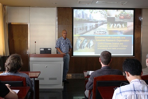 Shouyi Sun则作了题为“Research on slags and properties of high temperature melts”的报告。在报告正式开始之前,Shouyi Sun先给听众们介绍了CSIRO、CSIRO的课题及研究进展。在之后Steven Wright 博士以“Improving Antimony Production At Hillgrove Gold Mine”为题,为大家介绍了此项目所做的工作,以及取得的成果。