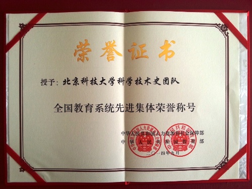 2014年9月9日庆祝第三十个教师节暨全国教育系统先进集体和先进个人表彰大会在京举行。我校科学技术史团队荣获先进集体荣誉称号。冶金与材料史研究所副所长李秀辉副教授代表科学技术史团队参加了国家领导人的接见与表彰大会。