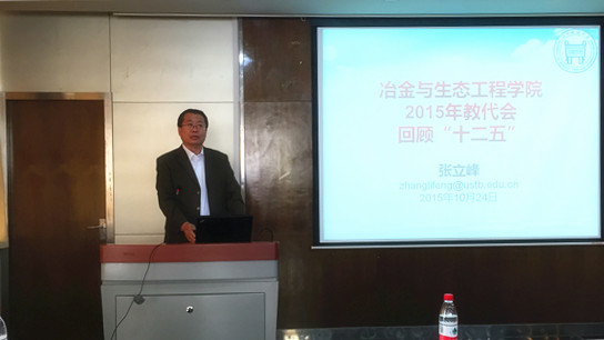 院长张立峰在大会上向全体教职工作学院工作报告暨学院“十三五规划”汇报,回顾了我院五届五次教代会以来的整体工作,提出了2016年的工作思路及重点工作。他指出,学院坚持以人才培养为中心,圆满完成各项工作任务,推进了事业发展。在新的一年里,我们必须自觉贯彻党的教育方针,从建设教育强国和办人民满意教育的高度出发,科学编制“十三五”规划,为实现“世界冶金教育与科研中心”的目标打下坚实基础。