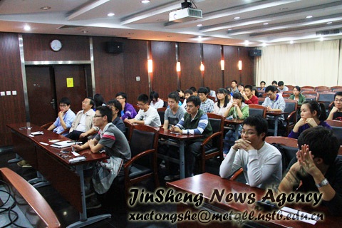 2012年10月8日晚7点,我院“2011-2012学年度特种奖学金答辩会”于青钢报告厅如期举行。院党委副书记王春义、院团委副书记尹传举、11级本科辅导员张瑜及部分学生代表担任答辩会评委,并为参加答辩的09级、10级、11级优秀学生打分, 12级新生也作为观众参与了此次答辩会,答辩会由2012级本科辅导员王洋主持。