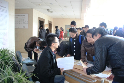 冒着瑟瑟的寒风,早晨8点冶金楼门口就排满了准备复试报到的考生。门外的展板贴出了我院硕士研究生复试方案、复试工作的日程安排、注意事项、专业课笔试考场安排等信息,方便大家了解复试工作流程。大厅里,工作台摆得整整齐齐,各种标识粘贴到位,从咨询、领表、收费、政审到资格审查秩序井然。考生进入大厅后,每个工作台上都有老师和院研会的志愿者认真地给予指导讲解,考生脸上洋溢着满意的笑容。为服务考生做好报到工作,冶研会的志愿者们协助提供了维持秩序和现场答疑的服务。