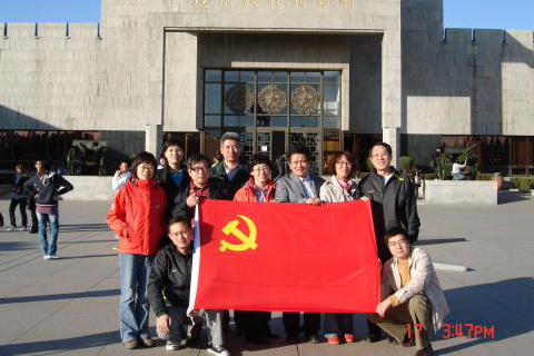 在喜迎建国60周年之际,2009年10月16、17日,党支部组织支部党员赴辽宁锦州参观辽沈战役纪念馆。锦州地处东北和华北的咽喉要道,依山近海,是中国历代兵家必争之地。辽沈战役从1948年9月12日至11月2日,历时52天。东北人民解放军在南至辽宁西部、北至沈阳、长春等地的千里战线上,同国民党军展开战略决战,国共双方共投入兵力150万之众。人民解放军先后攻克锦州,决战辽西,占领沈阳,最终全歼国民党军47万余人,解放东北全境。对此,开国领袖毛泽东评论说:“辽沈战役的胜利使中国的军事形势进入了一个新的转折点,这是中国革命成功已经迫近的标志。”