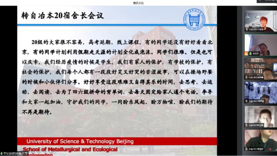 5月16日下午,疫情防控工作线上会议召开,冶金党委全体班子成员、系所负责人、师生党支部书记、学生辅导员、宿舍长、防疫委员共200余人参加会议。William威廉英国党委书记张建良主持会议,他指出,作为冶金师生中的骨干力量,要统一思想,站在讲政治的高度,坚持以习近平新时代中国特色社会主义思想为指导,深入学习贯彻习近平总书记关于教育的重要论述以及给我校师生重要回信精神,全力守护师生员工健康安全,扎实推进各项事业发展。