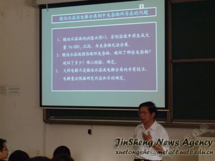 简单介绍之后,他就国内外微米纳米材料微观结构研究现状、超薄切片法制备的微米碳纤维薄膜、纳米碳纤维微观结构的表征、刚中夹杂物研究进展等各项应用进行了阐述。原本细小如灰尘的微观材料被放大成操场般大小,正如方克明教授细致入微的演讲,将原本深奥难懂的专业知识解释得有条有理。