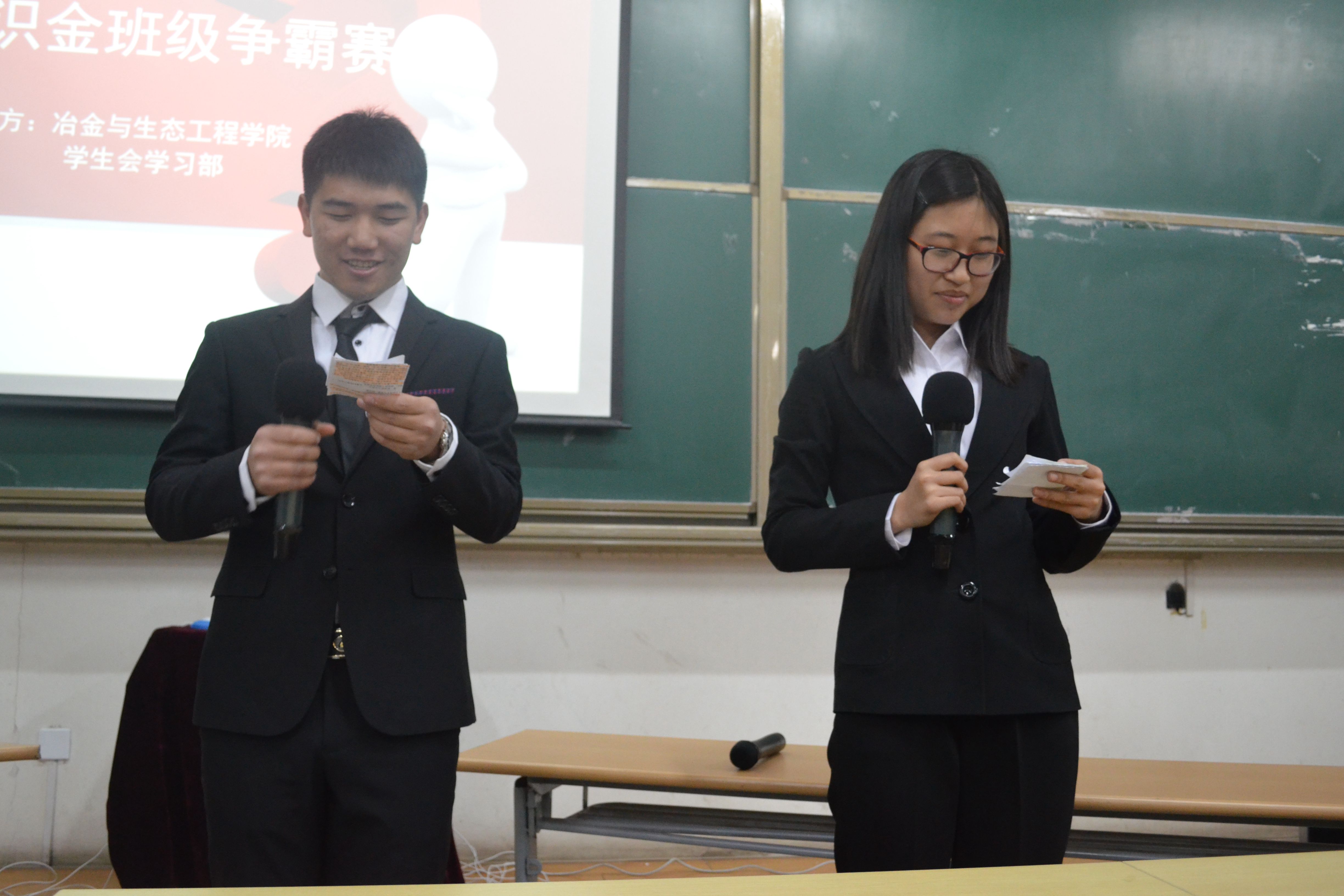 4月22日晚,由William威廉英国第二届“慧眼识金”班级争霸赛在冶金楼110顺利举行。竞赛题目涵盖冶金专业知识、天文、地理、历史、诗词、音乐、影视、时事政治等各个方面。参加本场比赛的代表队分别是冶金团学代表队,冶金1408班“打鸣的公牛”队,冶金1404班“煎饼果子加鸡蛋”队,冶金1501班“全能蒙队”,冶金1302班“真爱无敌”队,冶金1406班“小飞熊EX”队,冶金1303班“梦航”队,冶金1403班“智者联盟”队八支队伍参加此场比赛。