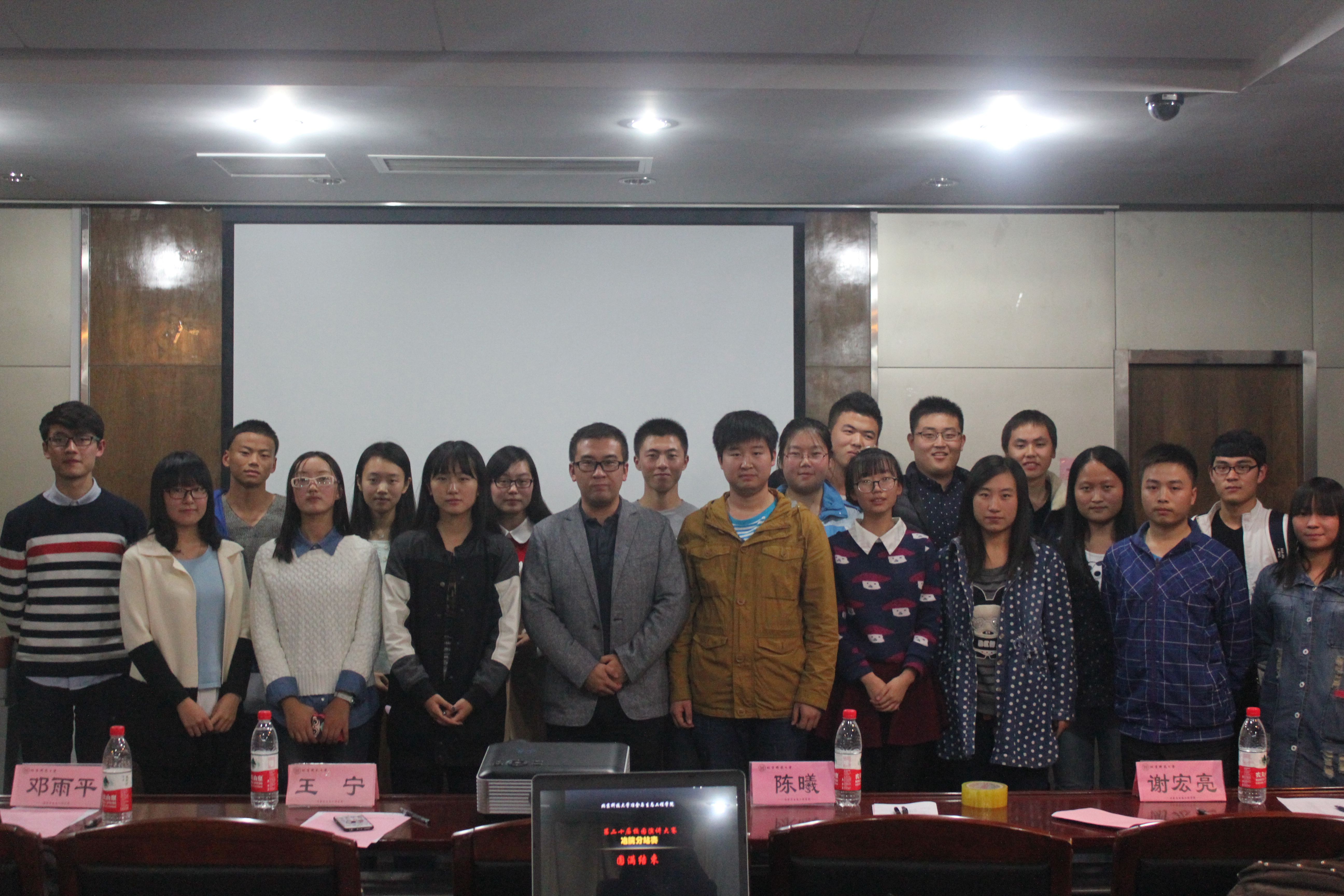经过紧张角逐,冶金1506班的潘凌峰同学获得一等奖,冶金1305班的钟文靖同学和冶金1403班的周敏同学分别获得二、三等奖。活动评委与参赛选手合影留念。