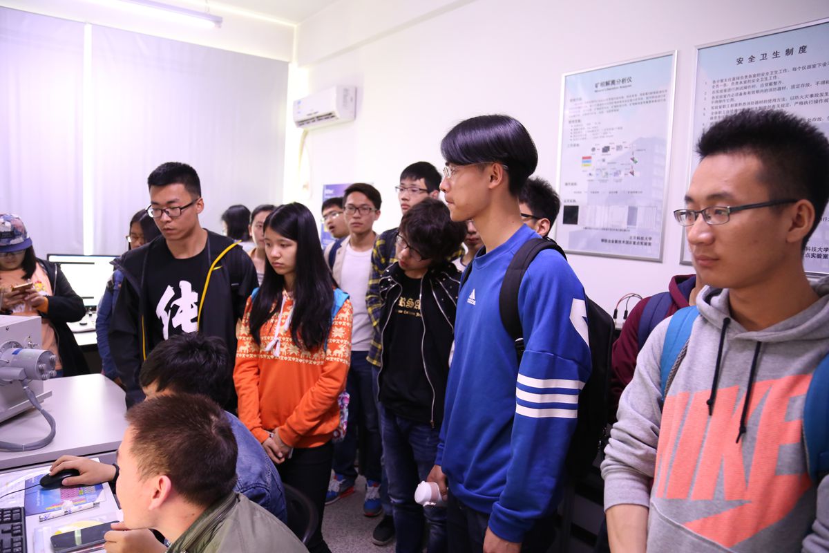 上午十时许,2015级全体本科生以班级为单位集合,开始按照既定路线进行参观。按计划,每组分别要参观中间包水模型实验室、炼铁新技术实验室、有色金属冶炼实验室、稀贵金属绿色回收与提取北京市重点实验室、冶金工程国家级实验教学示范中心和冶金新技术国家重点实验室。参观过程中,每个实验室的负责老师向同学们详细介绍了其相关的研究方向,各类设备的作用,并鼓励大一新生主动了解科研,参与科研。面对同学们的每一个疑问,老师们也用通俗易懂的语言耐心的做出解答。