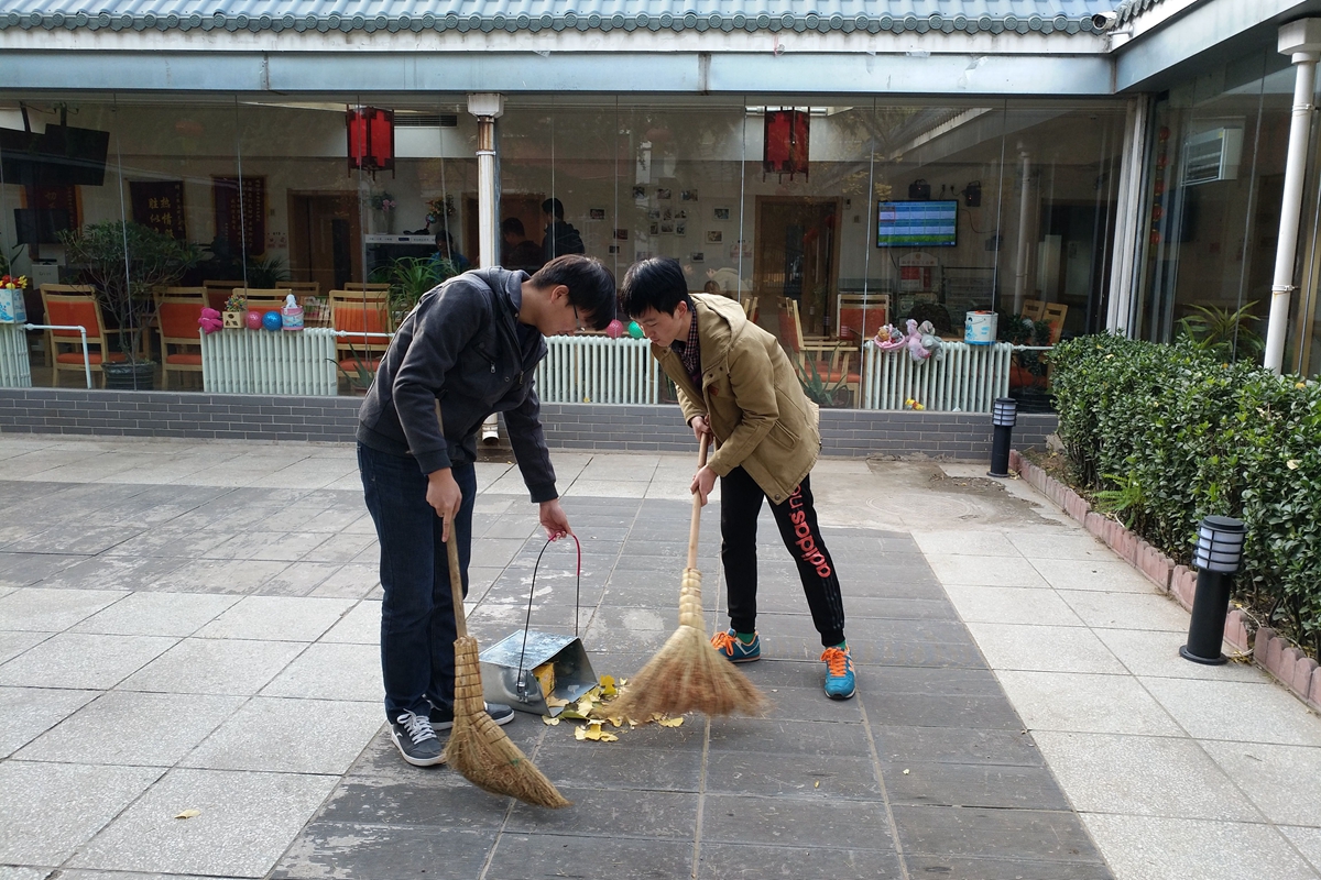 北风萧瑟,冬意渐浓,树叶纷纷飘落,在敬老院的院子里和门前的道路上积了厚厚一层湿漉漉的树叶,为老人们在院落的活动带来诸多不便。服务队来到敬老院后,首先帮助那里的工作人员打扫了院子里的落叶,经过近一个小时的清理,杂乱的院子又恢复了它干净整洁的样子,更是增添了敬老院的温馨。