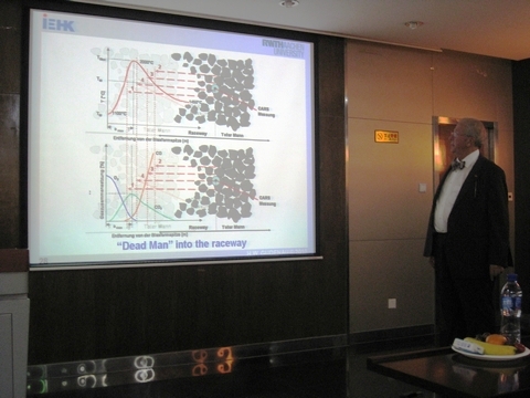 报告在Gudenau教授风趣幽默的开场白中开始。在报告中,Gudenau教授先向大家介绍了德国亚琛工业大学的地理位置、主要建筑、人文环境、校园风景、实验设施等基本情况。接着,他又用一系列富有历史气息的老照片讲述了我校杨天钧教授、吴铿教授等人在亚琛的学习情况。随后,Gudenau教授向大家介绍了钢铁冶炼的一些设备和工艺。