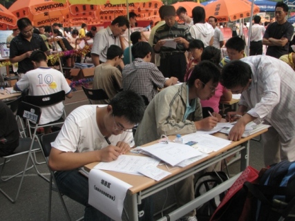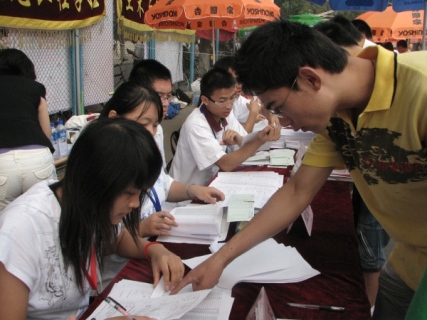 新生仔细填写报名表