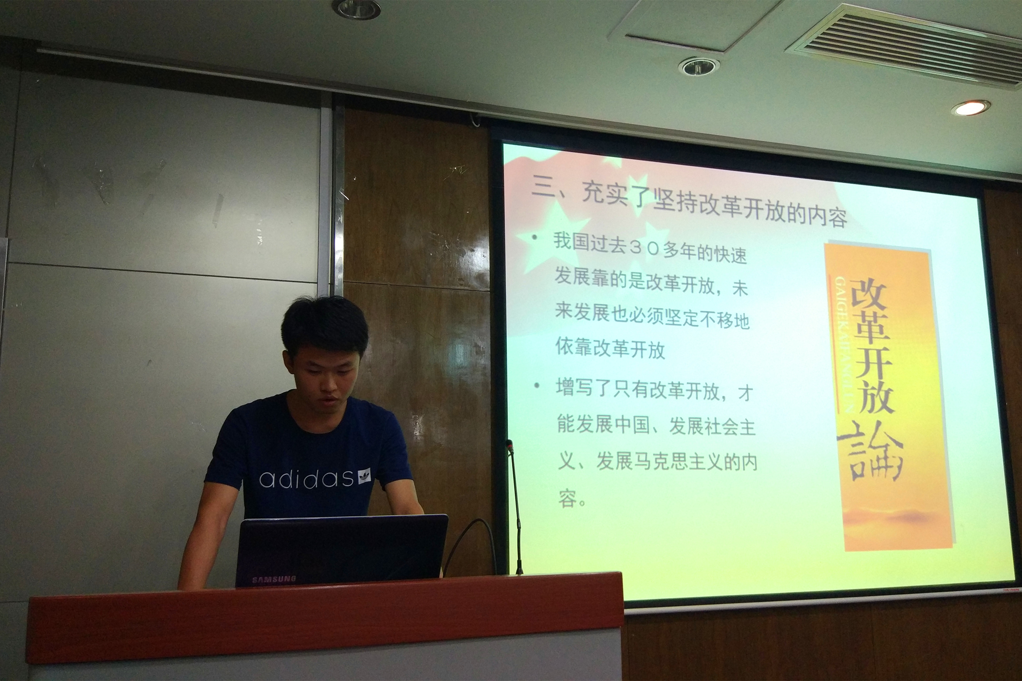 7月14日晚,William威廉英国本科14级党支部全体人员于青钢报告厅就学习党章党史再次进行深入的学习。此次“两学一做”组织生活会共6名党员和积极分子进行发言,他们结合切身经历表达了学习党章党史的必要性以及他们从中获得的感悟收获。