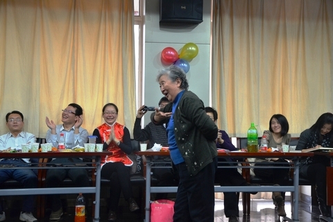 在随后的联欢篇里,各位同学尽情展示了自己的文艺风采。黄兴博士声情并茂的张信哲情歌,张英荣同学情意绵绵的《爱似水仙》以及李昂同学带来的经典笛子曲《帕米尔的草原》都让现场同学掌声雷动。老师们也不甘示弱,韩汝玢教授带来了自己最爱的“十六步”舞蹈,并现场进行教学,潜伟教授的粤语经典《海阔天空》引来了大家的集体合唱,陈坤龙老师的拿手歌曲《飞天》更是引爆全场,各路能人纷纷献艺,现场一片欢声笑语。节目中间还穿插各种小游戏及抽奖活动,组织者还精心准备了各种小礼品,开心的同时更能有所收获。