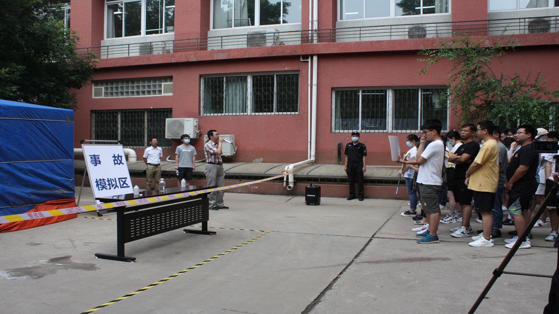6月24日早上9:50分,冶金楼响起消防警报,浓烟在楼道里面冒出,从负一层至十二层的师生在每层消防疏散员的引导下,从步行楼梯有序疏散,集合在冶金楼南侧的车间广场,观看实验室危险化学品泄漏的应急演习,学习应急事故处理知识。