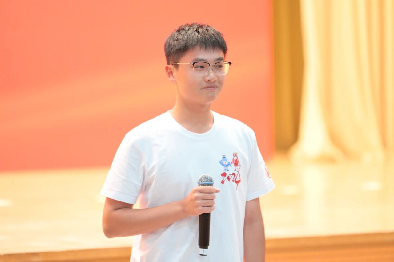 冶金2401班本科生刘佳杭代表新生发言。他希望与全体新生互勉,在青春的新起点上,争做努力上进的“精益求精钢”、服务社会的“千锤百炼钢”、奉献国家的“建功立业钢”,以钢筋铁骨和钢铁本领勇挑强国建设北科担当。