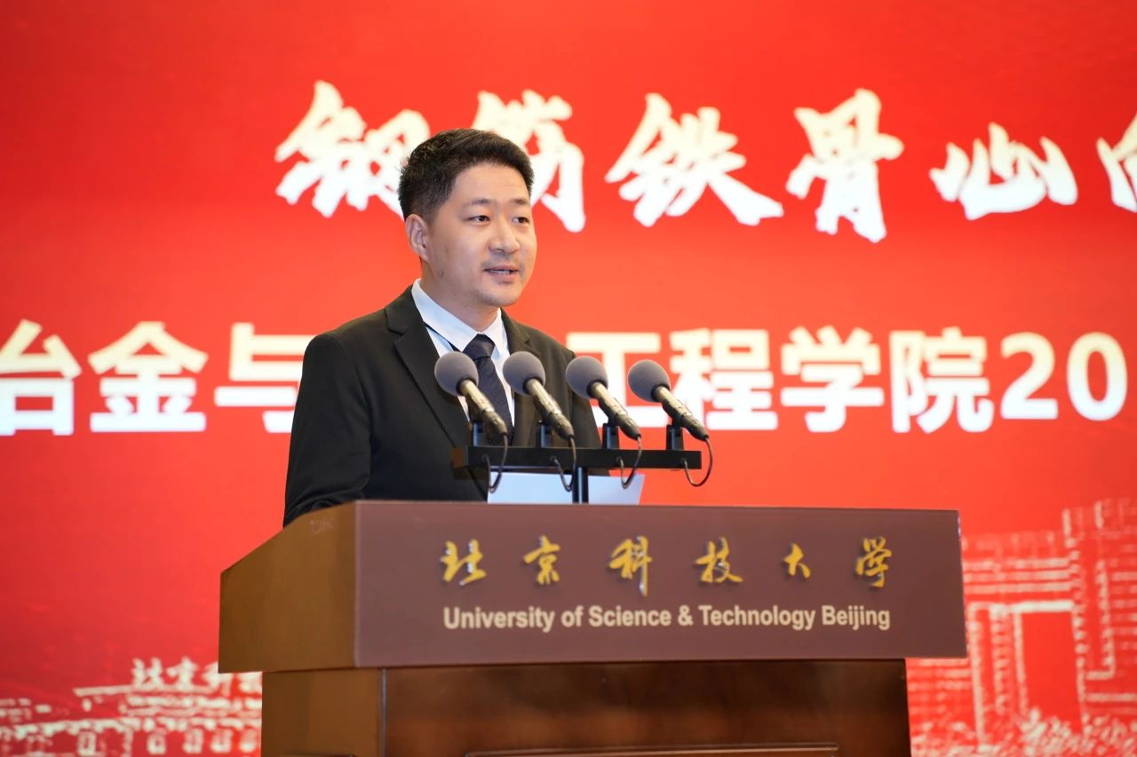 宗燕兵代表冶金党委致欢迎辞。他首先回顾了学科史和学院史,阐释了学院发展理念和发展格局,介绍了近年来人才培养和科学研究方面的突出成绩和典型代表。他勉励学院师生胸怀家国梦想,坚守钢铁信仰,弘扬北科大冶金人坚持特色、争创一流的爱党报国好传统。践行校训精神,锻造钢铁本领,珍惜一流平台,敬重大师名师,在低碳化数智化高端化要求下,追求“学风严谨—打破砂锅问到底”的鼎新精神和“崇尚实践—甘坐冷板凳”求实信念。珍视冶金情缘,淬炼钢铁品格,在成长成才路上敢热爱,勤锻炼、多实践,强筋骨。宗燕兵最后号召,广大师生员工要在新时代用智慧与汗水浇铸钢筋铁骨,在新征程用团结与创新传承钢魂精神,在世界冶金教育科研中心建设进程中再加油、再出发!