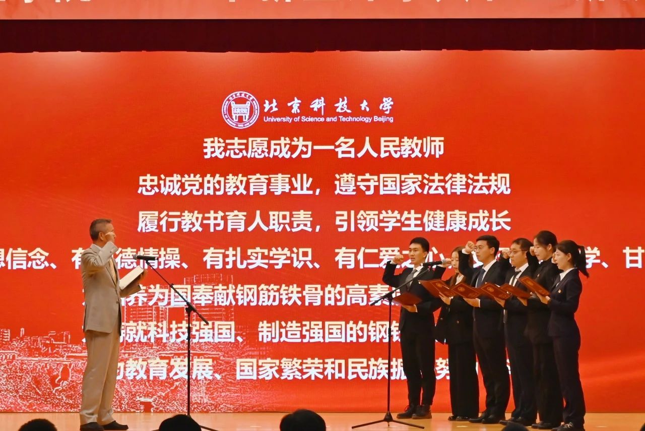 学院始终引领教师们坚持为党育人、为国育才的决心,形成了老中青、传帮带的教育教学培养模式。北京市教学名师、退休教授代表郭汉杰带领范筱玥、都昱、陈良、王立帆、韩沐妍、田慧军等6名新教师集体宣誓。